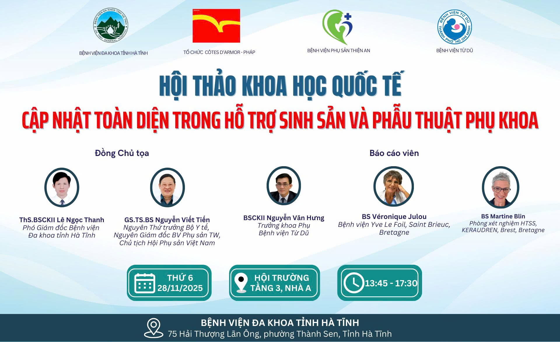 Ngày 28/11/2025, BSCKII Nguyễn Văn Hưng – Trưởng khoa Phụ, Bệnh viện Từ Dũ (TP.HCM) sẽ trực tiếp phối hợp thực hiện và chuyển giao kỹ thuật phẫu thuật nội soi phục hồi sẹo mổ lấy thai ngay tại Bệnh viện Đa khoa tỉnh Hà Tĩnh.