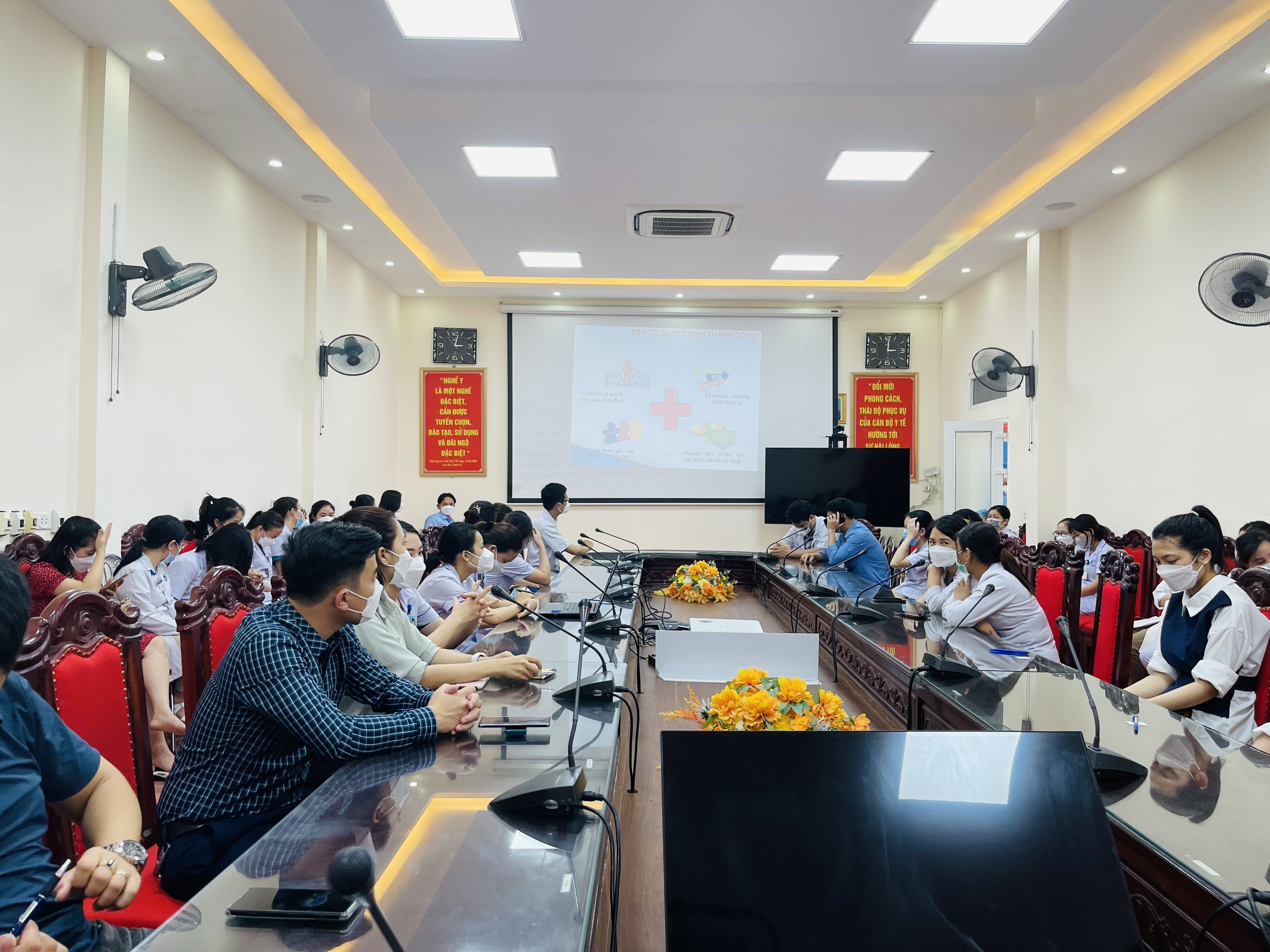 Chiều 13/04/2022 Bệnh viện Đa khoa tỉnh Hà Tĩnh phối hợp với Trung tâm huấn luyện An toàn vệ sinh lao động - Trường trung cấp nghề Hà Tĩnh tổ chức lớp tập huấn An toàn vệ sinh lao động tại bệnh viện.