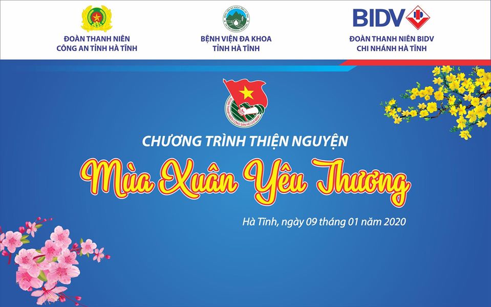 Thực hiện chương trình “Tình nguyện mùa đông” và “Xuân tình nguyện”; thiết thực hưởng ứng đợt cao điểm kỷ niệm 90 năm ngày thành lập Đảng Cộng sản Việt Nam 3/2/1930 - 3/2/2020. Phòng Công tác Xã hội, Bệnh viện Đa khoa tỉnh Hà Tĩnh phối hợp với Đoàn thanh niên Công An tỉnh Hà Tĩnh và Đoàn Thanh niên Ngân hàng và phát triển Việt Nam (BIDV) – Chi nhánh Hà Tĩnh tổ chức chương trình thiện nguyện “Mùa xuân yêu thương”.
