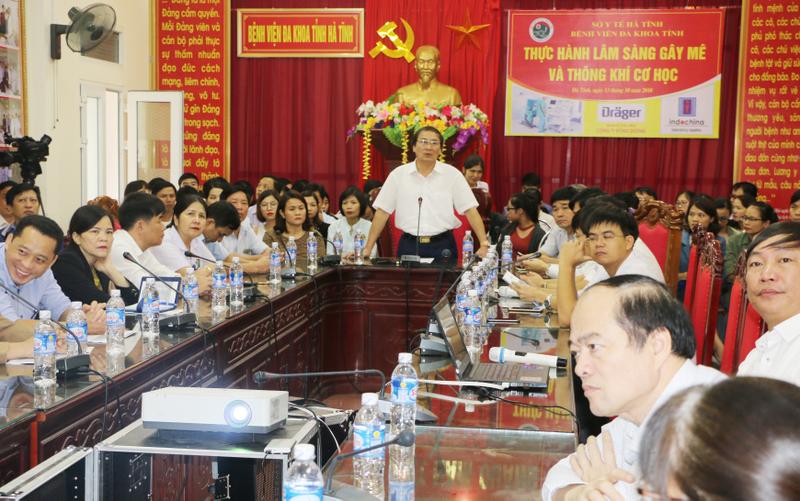 Ngày 13/10, Bệnh viện Đa khoa Hà Tĩnh phối hợp Công ty TNHH vật tư khoa học kỹ thuật Đông Dương và Công ty TNHH thiết bị y tế Drager tổ chức hội thảo thực hành lâm sàng gây mê và thông khí cơ học. Tham dự khai mạc hội thảo có Thầy thuốc nhân dân, Bác sỹ chuyên khoa 2 Nguyễn Viết Đồng – Phó Giám đốc Sở Y tế - Giám đốc Bệnh viện đa khoa tỉnh Hà Tĩnh, đại diện lãnh đạo phòng nghiệp vụ Y Sở Y tế.