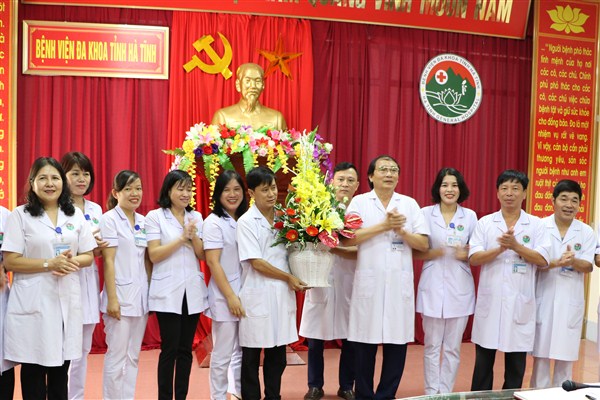 Sáng ngày 19/10/2018, nhân dịp kỷ niệm 88 năm ngày Thành lập Hội liên hiệp phụ nữ Việt Nam (20/10/1930 - 20/10/2018), Đảng ủy, Ban Giám đốc, BCH Công đoàn Bệnh viện Đa khoa tỉnh Hà Tĩnh đã gửi tới các đồng chí Nữ cán bộ viên chức Bệnh viện bó hoa tươi thắm và những lời chúc mừng tốt đẹp nhất.
