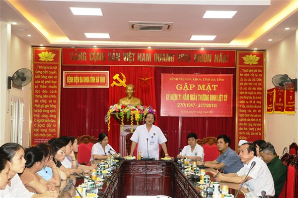 Nhân dịp kỷ niệm 71 năm ngày Thương binh Liệt sỹ (27/7/1947 - 27/7/2018), chiều ngày 27/7/2018, Bệnh viện Đa khoa tỉnh Hà Tĩnh tổ chức buổi gặp mặt tri ân các cán bộ, viên chức là thương binh, bệnh binh, thân nhân liệt sỹ hiện đang công tác tại các khoa, phòng trong toàn bệnh viện.