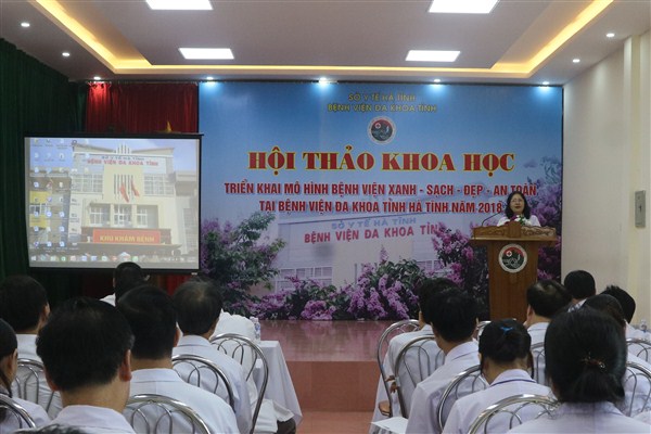 Ngày 03/8, Bệnh viện Đa khoa tỉnh Hà Tĩnh tổ chức hội thảo khoa học triển khai mô hình bệnh viện xanh – sạch – đẹp – an toàn. Tham dự hội thảo có đại diện lãnh đạo phòng Nghiệp vụ Y- Sở Y tế, lãnh đạo Bệnh viện đa khoa tỉnh cùng 60 đại biểu đại diện các khoa, phòng, bộ phận trong toàn bệnh viện. Thầy thuốc ưu tú - BSCKI Trần Thị Dung, Phó Giám đốc bệnh viện, Trưởng ban xây dựng bệnh viện Xanh - sạch - đẹp - an toàn chủ trì hội thảo.