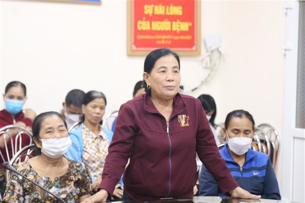 Đến tham dự buổi họp, về phía Bệnh viện có đồng chí Tôn Đức Quý, Phó Giám đốc Bệnh viện, đồng chí Trần Sỹ Thắng, Trưởng phòng Điều dưỡng, đồng chí Hồ Xuân Hương, Phó Trưởng phòng Hành chính Quản trị cùng hơn 70 bệnh nhân, người nhà bệnh nhân đến từ tất cả các khoa lâm sàng trong toàn bệnh viện.