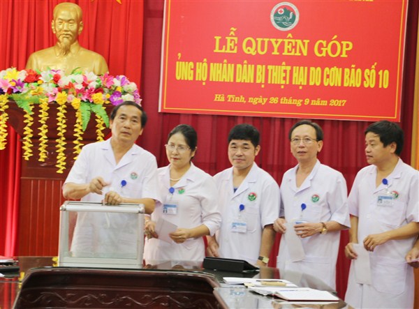 Trong tháng, hưởng ứng lời kêu gọi của Mặt trần tổ quốc tỉnh, Cán bộ viên chức bệnh viện đã tổ chức quyên góp được gần 110 triệu đồng ủng hộ đồng bào bị thiệt hại do cơn bão số 10 gây ra.