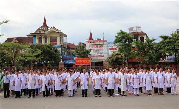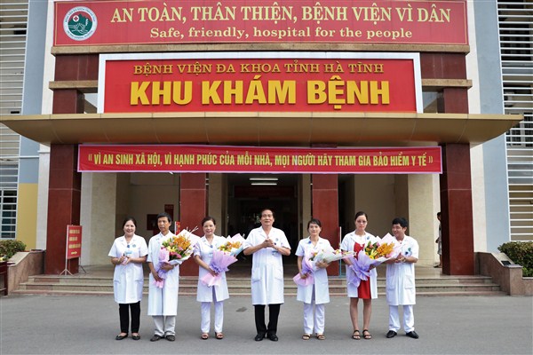 Thầy thuốc nhân dân, Bác sỹ chuyên khoa 2 Nguyễn Viết Đồng, Phó Giám đốc Sở Y tế, Giám đốc bệnh viện (người đứng giữa) vinh dự là một trong bốn đại biểu của tỉnh Hà Tĩnh được tuyên dương tại Lễ tuyên dương điển hình tiến tiến toàn quốc năm 2017 tại Hà Nội