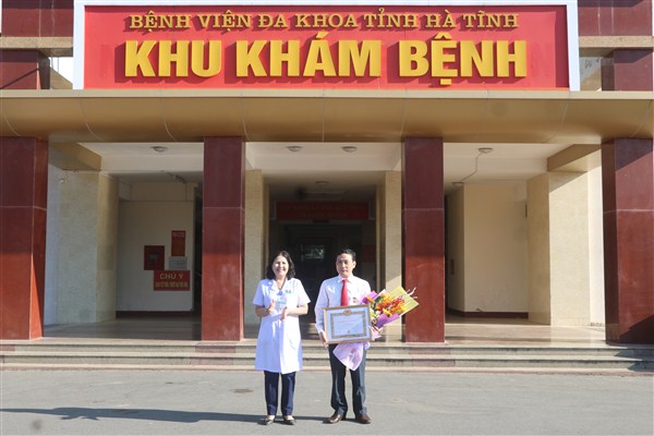 Các đồng chí trong Ban thường vụ Đảng ủy, Ban giám đốc tặng hoa chúc mừng Thầy thuốc nhân dân, Bác sĩ chuyên khoa 2 Nguyễn Viết Đồng, Phó Giám đốc Sở Y tế kiêm Bí thư Đảng bộ, Giám đốc bệnh viện là một trong năm cá nhân tiêu biểu đại diện cho tỉnh Hà Tĩnh sẽ được vinh danh tại Lễ kỷ niệm 70 năm ngày Chủ tịch Hồ Chí Minh ra lời kêu gọi thi đua ái quốc và biểu dương tôn vinh các anh hùng, điển hình tiến tiến được tổ chức tại Cung văn hóa Hữu nghị Việt - Xô Hà Nội vào ngày 03/6/2018