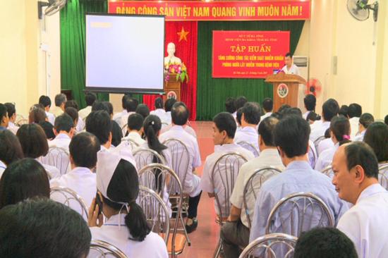 Vừa qua, Bệnh viện Đa khoa tỉnh đã tổ chức lớp tập huấn tăng cường công tác kiểm soát nhiễm khuẩn, phòng ngừa lây nhiễm trong bệnh viện. Tại lớp tập huấn, các học viên được truyền đạt các kiến thức về hướng dẫn giám sát kiểm soát nhiễm khuẩn bệnh viện; phòng ngừa nhiễm khuẩn vết mổ và nhiễm khuẩn huyết do đặt catheter mạch máu; phòng ngừa nhiễm khuẩn tiết niệu; xử lý dụng cụ nội soi phẫu thuật, nội soi mềm, vệ sinh môi trường bệnh viện, vệ sinh tay…