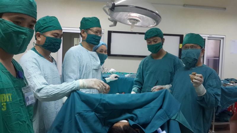 Trong tháng, khoa Ngoại Tổng hợp đã thực hiện thành công ca phẫu thuật lấy khối sỏi thận kích thước to bằng nắm tay người lớn, chưa từng thấy ở Hà Tĩnh cho bệnh nhân bị dị tật thận móng ngựa.