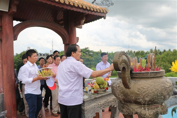 Kết thúc hành trình đoàn đã đến dâng hương tại phần mộ của Đại tướng Võ Nguyên Giáp tại Vũng Chùa - Đảo yến, xã Quảng Đông, Quảng Trạch, Quảng Bình.