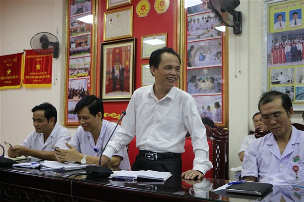 Ths.BS Hoàng Quang Trung, Bí thư Đảng ủy, Giám đốc bệnh viện chủ trì buổi gặp mặt, cùng tham dự có các đồng chí trong Ban thường vụ, Ban Giám đốc, Ban chấp hành công đoàn và các đồng chí lãnh đạo các khoa, phòng trong toàn bệnh viện.