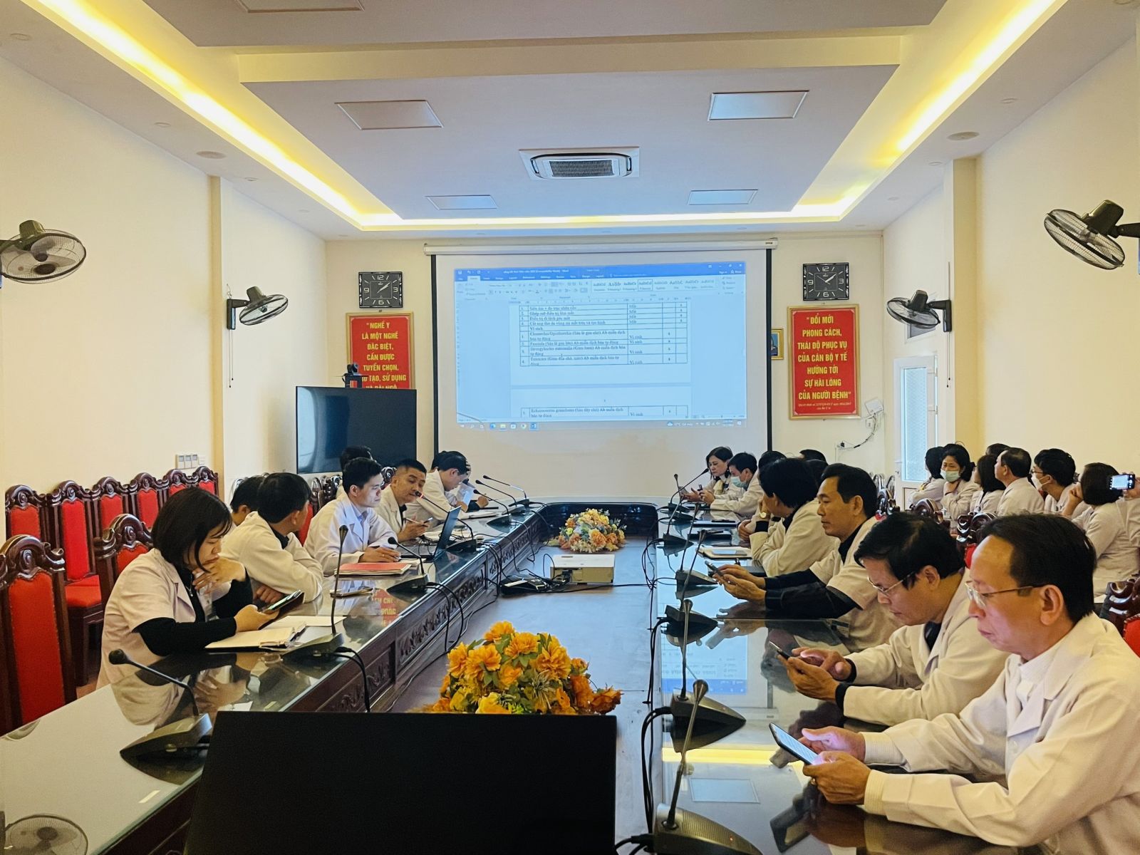 Tham dự và chỉ đạo cuộc họp có đồng chí Lê Ngọc Thanh - Phó Giám đốc Bệnh viện cùng các đồng chí trưởng phó khoa, phòng trong bệnh viện.