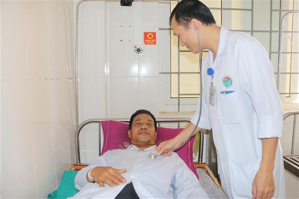 Bác sĩ Nguyễn Phi Thành thăm khám bệnh nhân Lê Minh H.. sau khi được can thiệp đặt Stent mạch vành.