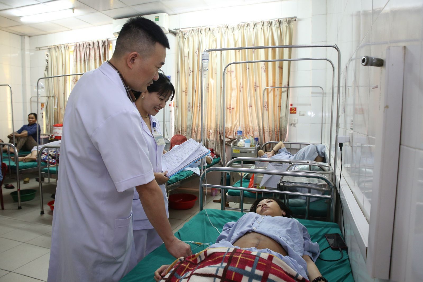 Bác sỹ Nguyễn Viết Thọ kiểm tra vết mổ cho sản phụ N. sau phẫu thuật.