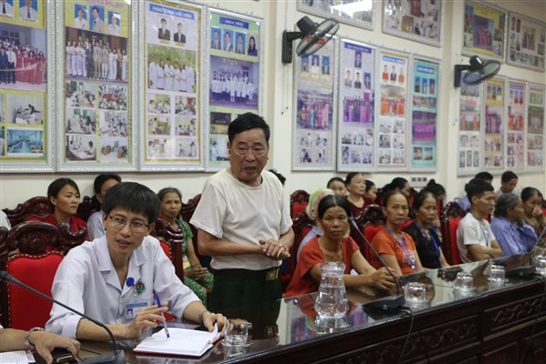 Đến tham dự buổi họp, về phía Bệnh viện có TS. BS. Lê Văn Dũng, Phó Giám đốc Bệnh viện; đồng chí Trần Sỹ Thắng, Trưởng phòng Điều dưỡng; đồng chí Hoàng Song Hào, Trưởng phòng Quản lý chất lượng; đồng chí Nguyễn Viết Nhuận, Phó Trưởng phòng Hành chính quản trị cùng hơn 50 bệnh nhân, người nhà bệnh nhân đến từ tất cả các khoa lâm sàng trong toàn bệnh viện.