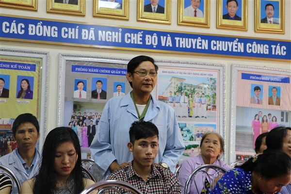 Đến tham dự buổi họp, về phía Bệnh viện có Ths.Bs Lê Ngọc Thanh, Trưởng phòng Kế hoạch tổng hợp bệnh viện và các đồng chí phó trưởng các phòng chức năng: Hành chính quản trị, Điều dưỡng và Quản lý chất lượng cùng gần 50 bệnh nhân đến từ tất cả các khoa phòng ban trong toàn viện. Hội đồng người bệnh đã bầu ông Võ Xuân Anh, người nhà bệnh nhân đang điều trị tại khoa Ung bướu làm chủ trì cuộc họp.