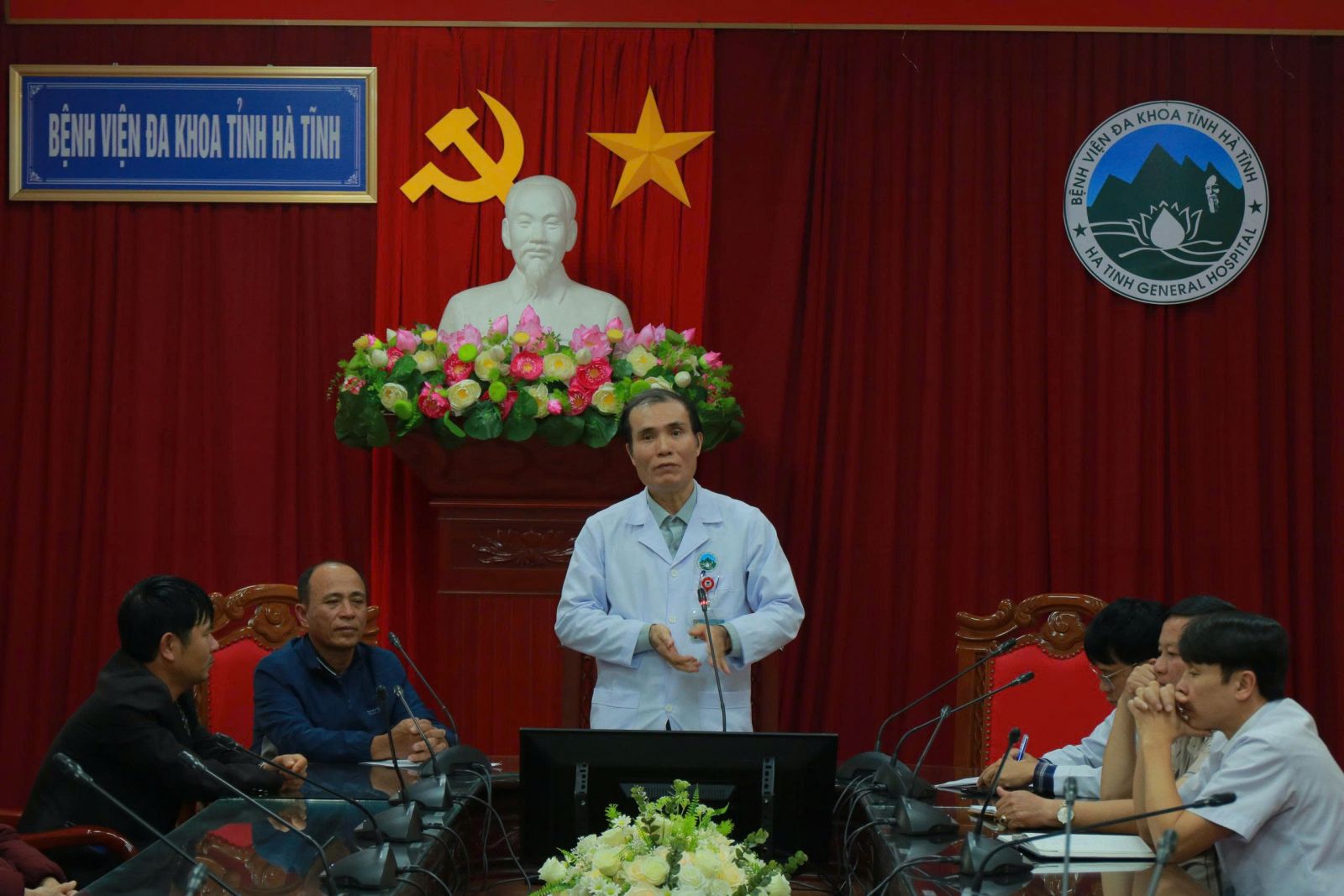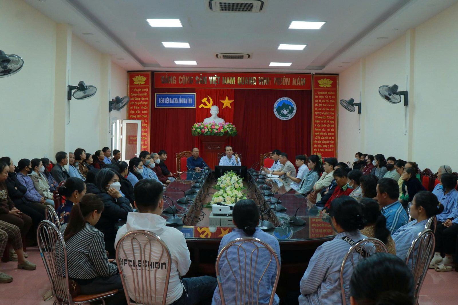 Đến tham dự buổi họp, về phía Bệnh viện có đồng chí Lê Văn Dũng, Phó Giám đốc Bệnh viện, đồng chí Trần Sĩ Thắng, Trưởng phòng Điều dưỡng, đồng chí Hồ Xuân Hương, Phó Trưởng phòng Hành chính quản trị, đồng chí Trần Hoàng Nhân, Phó Trưởng phòng Quản lý chất lượng cùng hơn 70 bệnh nhân, người nhà bệnh nhân đến từ tất cả các khoa lâm sàng trong toàn bệnh viện.