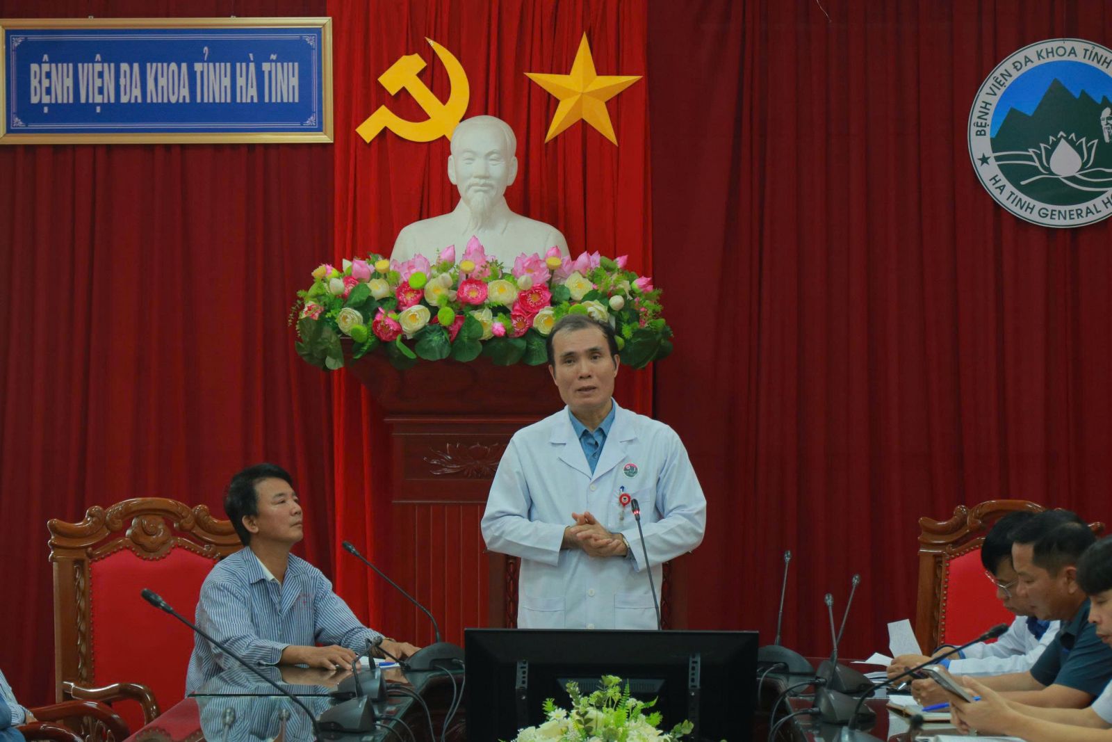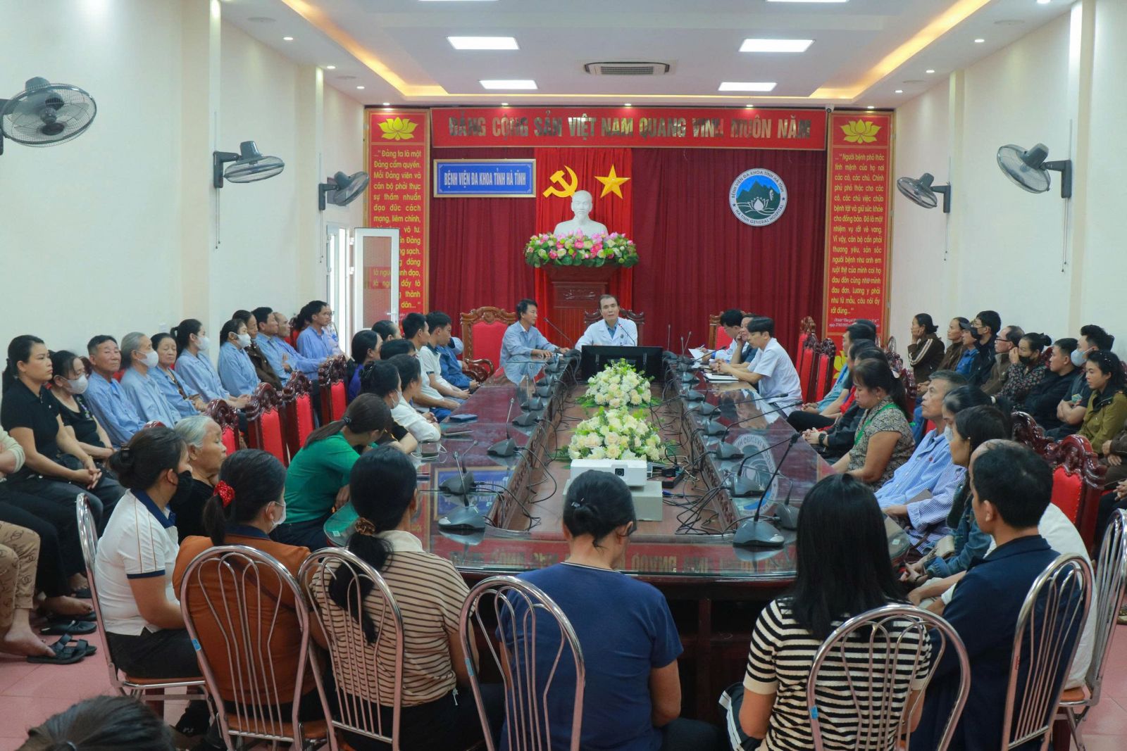 Đến tham dự buổi họp, về phía Bệnh viện có đồng chí Lê Văn Dũng, Phó Giám đốc Bệnh viện, đồng chí Trần Sĩ Thắng, Trưởng phòng Điều dưỡng, đồng chí Hồ Xuân Hương, Phó Trưởng phòng Hành chính quản trị, đồng chí Trần Hoàng Nhân, Phó Trưởng phòng Quản lý chất lượng cùng hơn 70 bệnh nhân, người nhà bệnh nhân đến từ tất cả các khoa lâm sàng trong toàn bệnh viện.