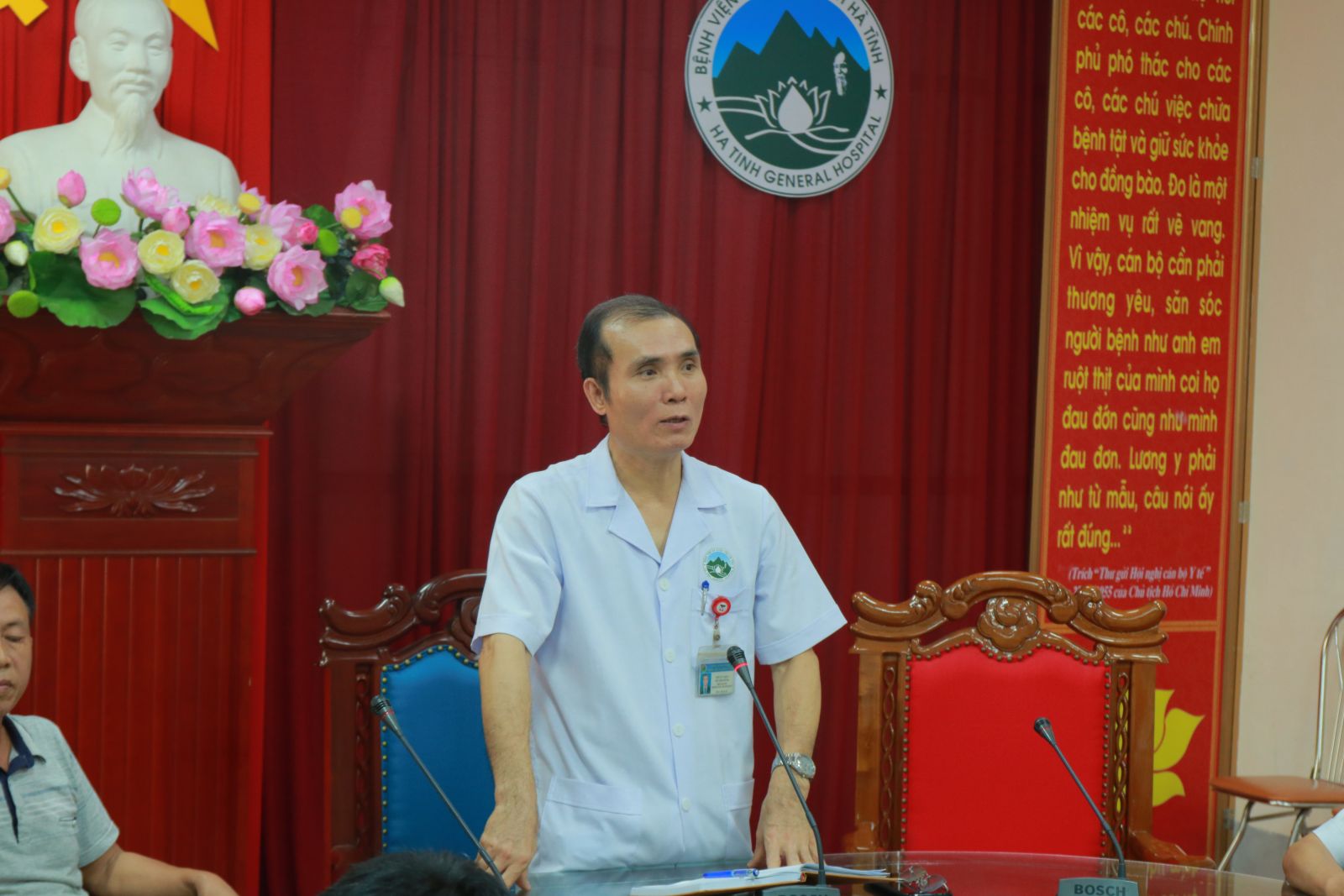 Thay mặt lãnh đạo Bệnh viện, đồng chí Lê Văn Dũng, Phó Giám đốc rất cảm ơn những lời nhận xét tích cực, động viên và các phát biểu có tính xây dựng từ phía bệnh nhân và người nhà bệnh nhân, giúp Bệnh viện có thêm động lực phát huy các điểm mạnh và hoàn thiện hơn nữa. Đồng chí đã giải đáp đầy đủ các thắc mắc của bệnh nhân và người nhà bệnh nhân. Đồng chí Lê Văn Dũng hứa sẽ phát huy, duy trì, củng cố những mặt tốt, tăng cường cải tạo, khắc phục, sửa chữa những vấn đề còn tồn tại nhằm đáp ứng yêu cầu thiết thực của người bệnh. Buổi họp hội đồng người bệnh thực sự là một kênh phản hồi thông tin nhằm đưa lại những điều kiện khám và điều trị tốt nhất cho bệnh nhân.
