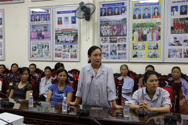 Thay mặt lãnh đạo bệnh viện, đồng chí Phó giám đốc đã tiếp thu và cảm ơn các ý kiến đóng góp, những tình cảm của mọi người dành cho bệnh viện. Đồng thời tại buổi họp, đồng chí đã giải đáp tất cả các vấn đề mà bệnh nhân quan tâm. Đồng chí hứa sẽ phát huy, duy trì, củng cố những mặt tốt, tăng cường cải tạo, khắc phục, sửa chữa những vấn đề còn tồn tại nhằm đáp ứng yêu cầu thiết thực của người bệnh. Tuy nhiên đồng chí cũng mong muốn bệnh nhân và người nhà bệnh nhân thông cảm cho bệnh viện, khi bệnh viện được xây dựng kế hoạch 500 giường bệnh nhưng hiện nay bệnh nhân điều trị lên đến hơn 1000, chưa thể đáp ứng được nhu cầu cơ sở vật chất, có một số vấn đề không thể khắc phục ngay được mà phải có lộ trình vì bệnh viện luôn trong tình trạng quá tải và kinh phí hoạt động eo hẹp.