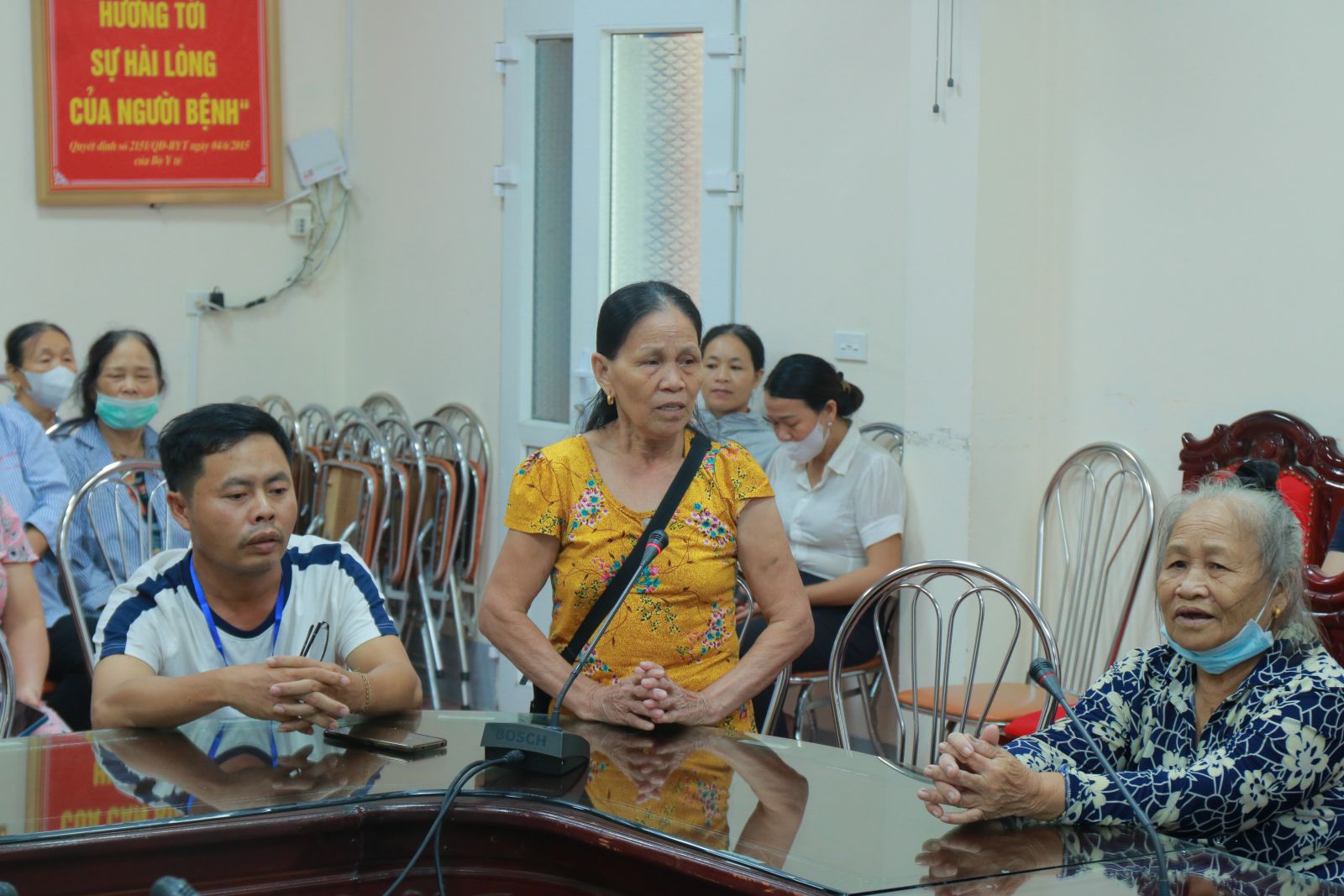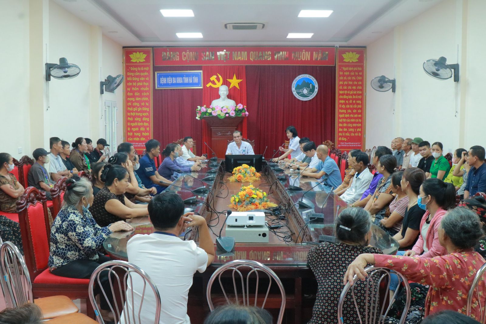 Đến tham dự buổi họp, về phía Bệnh viện có đồng chí Lê Văn Dũng, Phó Giám đốc Bệnh viện, đồng chí Trần Sỹ Thắng, Trưởng phòng Điều dưỡng, đồng chí Hồ Xuân Hương, Phó Trưởng phòng Hành chính Quản trị, đồng chí Trần Hoàng Nhân, Phó Trưởng phòng Quản lý chất lượng cùng hơn 70 bệnh nhân, người nhà bệnh nhân đến từ tất cả các khoa lâm sàng trong toàn bệnh viện.