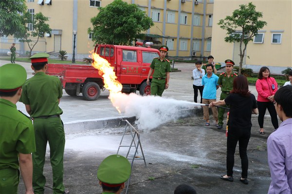Sau phần học lý thuyết, các cán bộ viên chức được trực tiếp thực hành những kỹ thuật PCCC cơ bản dưới sự hướng dẫn của cán bộ Phòng Cảnh sát PCCC như: hoạt động chạy thoát hiểm khi có hỏa hoạn, sử dụng bình chữa cháy loại bình khí CO2 và bình chữa cháy loại bột để dập tắt đám cháy và cách thức xử lý nhanh các tình huống có thể xảy ra, sử dụng vòi phun, cách dập tắt đám cháy mới phát sinh…
