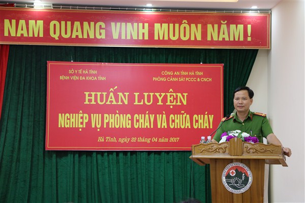 Ngày 22/4/2017, Bệnh viện Đa khoa tỉnh Hà Tĩnh đã phối hợp với Phòng Cảnh sát Phòng cháy - Chữa cháy và cứu nạn, cứu hộ (PCCC&CNCH) Công an tỉnh Hà Tĩnh tổ chức chương trình tập huấn nghiệp vụ Phòng cháy chữa cháy (PCCC) cho cán bộ viên chức, lực lượng PCCC cơ sở và diễn tập phương án chữa cháy, cứu hộ cứu nạn năm 2017. Đây là hoạt động thường niên của Bệnh viện Đa khoa tỉnh Hà Tĩnh.