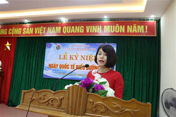 Tại lễ mít tinh ĐDCKI Trần Sỹ Thắng, Trưởng phòng Điều dưỡng thêm một lần nữa khẳng định vai trò quan trọng của công tác điều dưỡng trong sự nghiệp chăm sóc và bảo vệ sức khỏe nhân dân. Đồng thời chia sẻ về những đóng góp lớn lao mà âm thầm của đội ngũ điều dưỡng tại Bệnh viện đa khoa Hà Tĩnh. Trong nhiều năm qua, đội ngũ điều dưỡng luôn chăm sóc bệnh nhân tận tâm, ân cần chu đáo, góp phần cùng bệnh viện ngày càng đáp ứng sự hài lòng của người bệnh, người dân. Đồng thời nêu rõ quyết tâm của đội ngũ cán bộ điều dưỡng bệnh viện cố gắng phấn đấu, rèn luyện, nâng cao y đức để tô đẹp thêm hình ảnh người điều dưỡng, góp phần xứng đáng vào sự nghiệp chăm sóc sức khoẻ nhân dân.