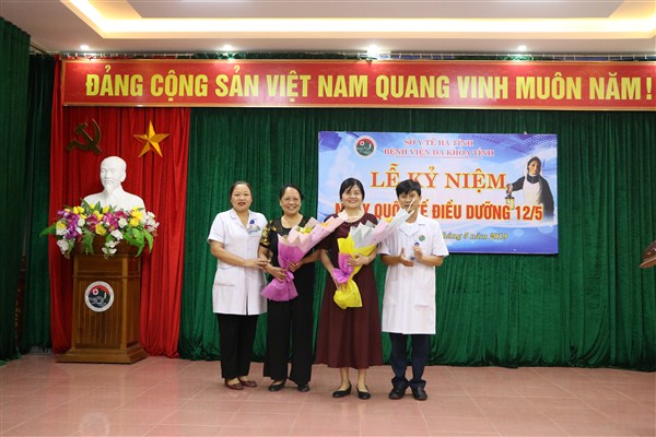 Lãnh đạo ngành tặng hoa chúc mừng Chi hội Điều dưỡng BVĐK Hà Tĩnh