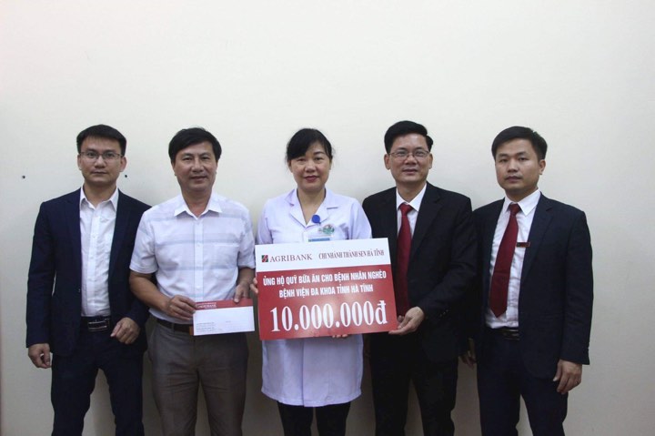 Chiều 13/01, Phòng Công tác xã hội - Bệnh viện Đa khoa tỉnh Hà Tĩnh đã tiếp nhận số tiền 10 triệu đồng đến từ Ngân hàng Nông nghiệp và phát triển nông thôn Agribank chi nhánh Thành Sen Hà Tĩnh ủng hộ "Quỹ bữa ăn cho bệnh nhân nghèo".
