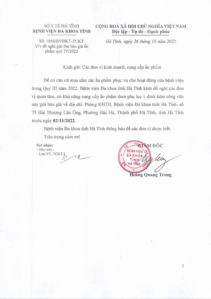 Bệnh viện Đa khoa tỉnh Hà Tĩnh xin thông báo để các đơn vị được biết.