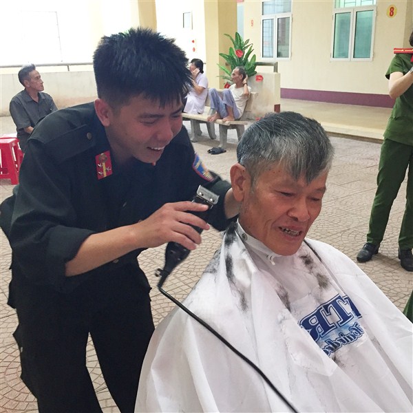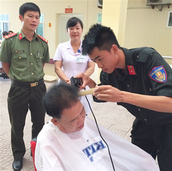 Tổ công tác xã hội bệnh viện Đa khoa tỉnh Hà Tĩnh phối hợp các đoàn viên thanh niên đến từ Công an tỉnh và Bộ chỉ huy bộ đội biên phòng tỉnh tiếp tục duy trì hoạt động cắt tóc cho bệnh nhân vào các buổi chiều thứ 6 cuối tuần.