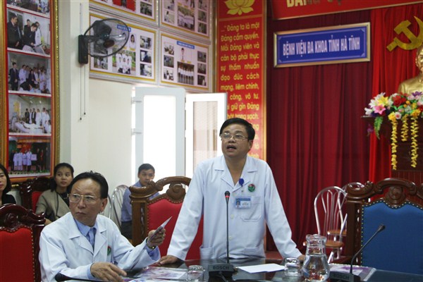 Đồng chí Tôn Đức Quý, Phó bí thư đảng ủy, Phó giám đốc bệnh viện phát biểu tại buổi hội thảo