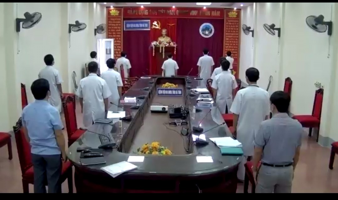 Để đảm bảo an toàn trong tình hình dịch Covid - 19 hiện nay, Bệnh viện đã tiến hành tổ chức giao ban hằng ngày, hội chẩn và chào cờ đầu tháng theo hình thức trực tuyến.