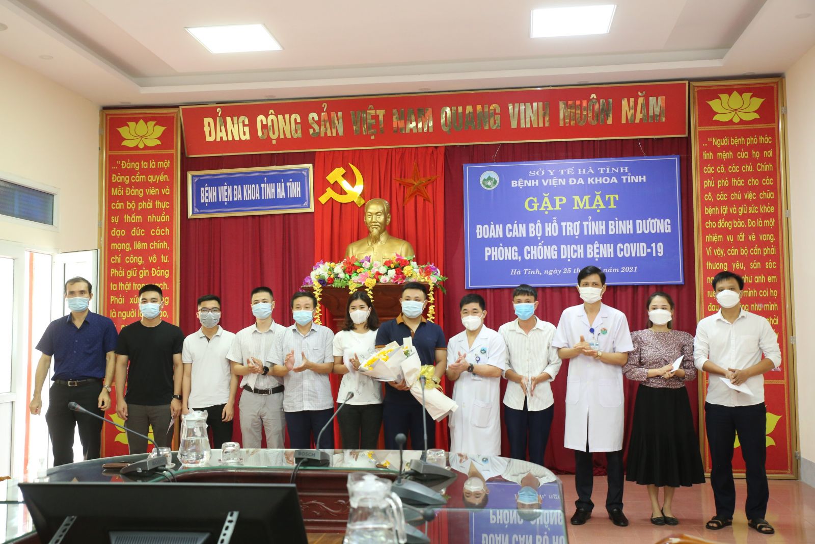 Bệnh viện Đa khoa tỉnh Hà Tĩnh đã tổ chức gặp mặt đoàn cán bộ đi hỗ trợ phòng chống dịch Covid-19 tại tỉnh Bình Dương.