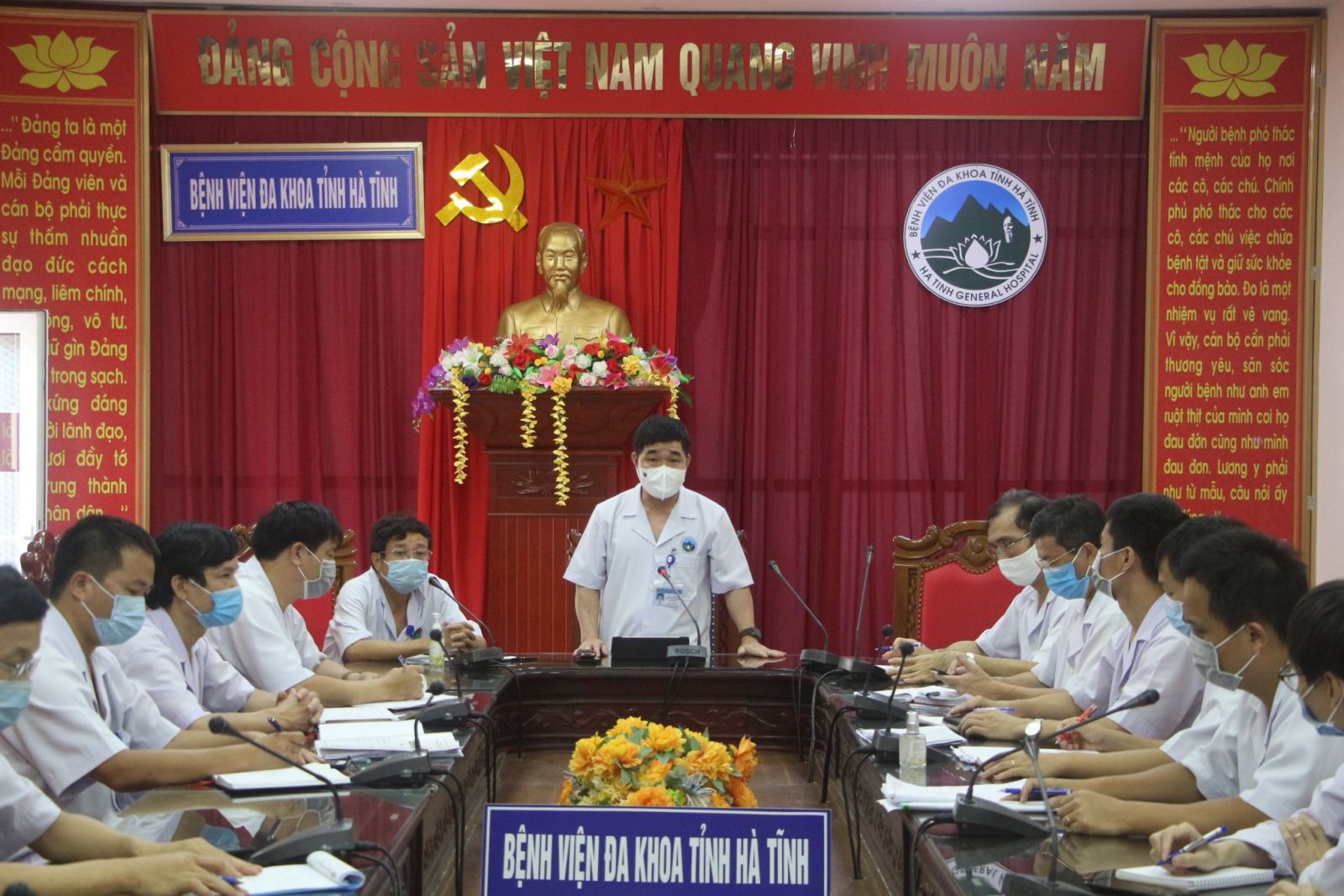Bên cạnh đó, đồng chí Giám đốc nhấn mạnh: Trước tình hình dịch bệnh hiện nay, toàn thể đội ngũ cán bộ viên chức không được chủ quan, lơ là, tiếp tục tuân thủ theo đúng các quy trình của Bộ, Tỉnh, Sở Y tế và bệnh viện nhằm đạt kết quả tốt nhất trong công tác phòng chống dịch bệnh, giảm thiểu tối đa nguy cơ lây nhiễm trong quá trình điều trị bệnh nhân.