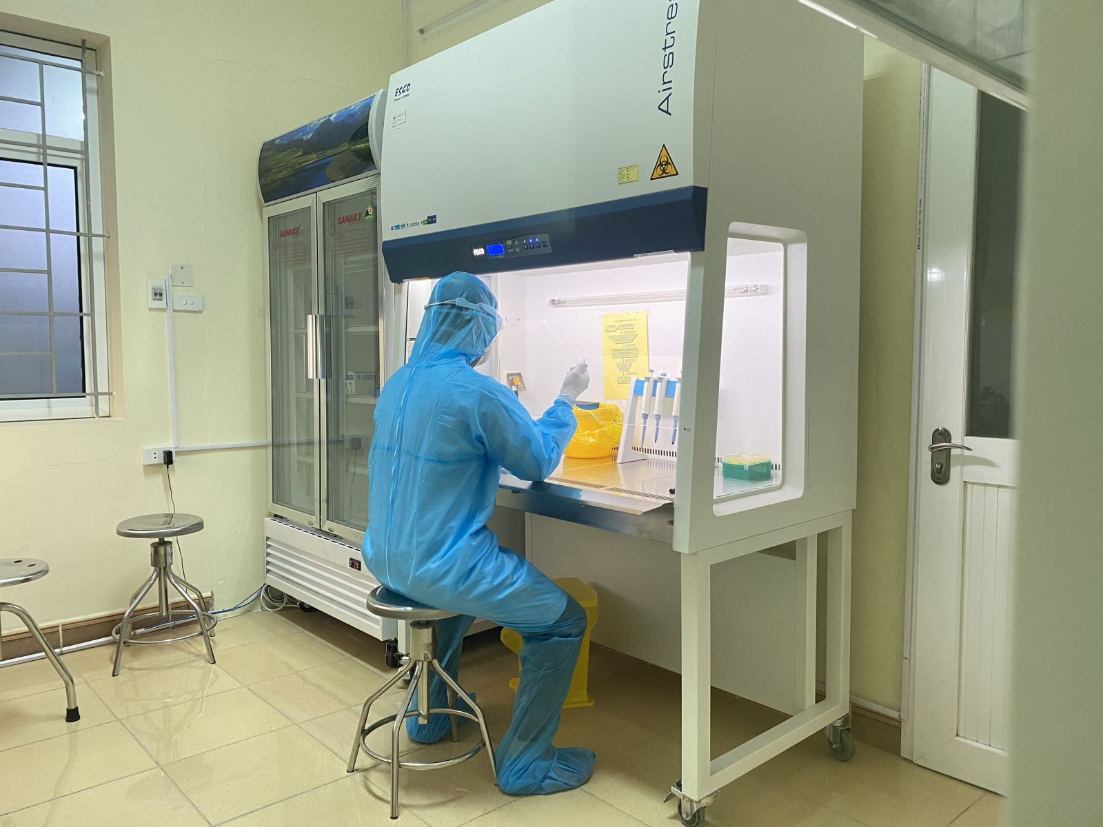 Khoa Vi sinh đang triển khai quá trình xử lý mẫu bệnh phẩm xét nghiệm virus SARS-CoV-2