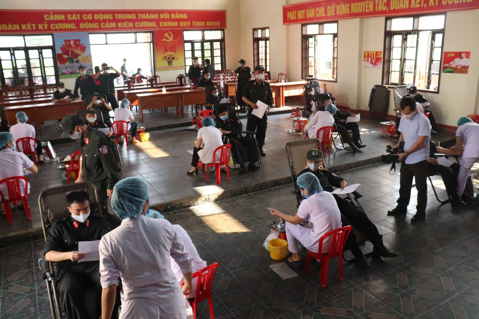 Phối hợp cùng các đơn vị cơ quan, đoàn thể tổ chức hiến máu tình nguyện để đảm bảo cung cấp đủ lượng máu cho quá trình điều trị cho bệnh nhân trong tình hình dịch Covid - 19 diễn ra.