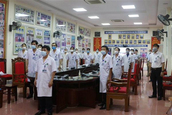Thực hiện chỉ thị số 16 của Thủ tướng Chính phủ về việc thực hiện giãn cách xã hội, tạm dừng tất cả các hoạt động đại hội, hội họp, tụ tập trên 20 người, Bệnh viện đã tiến hành tổ chức giao ban hằng ngày, các buổi tập huấn, hội chẩn theo hình thức trực tuyến.
