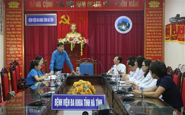 Thực hiện kế hoạch của Thường trực Liên đoàn Lao động tỉnh Hà Tĩnh về việc đánh giá, xếp loại tổ chức công đoàn năm 2020 để đánh giá kết quả phong trào CNVCNLĐ và hoạt động công đoàn năm 2020, Công đoàn Ngành Y tế tỉnh đã tiến hành kiểm tra toàn diện hoạt động công đoàn năm 2020 của Bệnh viện Đa khoa tỉnh Hà Tĩnh.