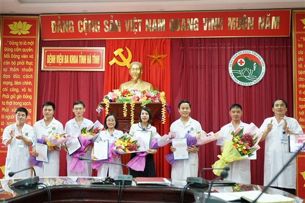 Bên cạnh đó, lãnh đạo Bệnh viện Đa khoa tỉnh Hà Tĩnh đã tổ chức trao các quyết định và tặng hoa chúc mừng cho 08 viên chức được bổ nhiệm vào các vị trí lãnh đạo tại các khoa, phòng.