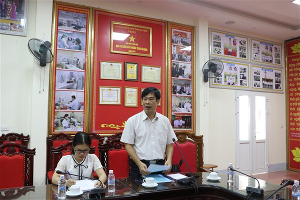 Thực hiện kế hoạch công tác năm 2019, Cục Khoa học công nghệ và Đào tạo, Bộ Y tế tổ chức buổi làm việc với bệnh viện đa khoa tỉnh Hà Tĩnh về việc thực hiện Nghị định số 111/2017/NĐ-CP của Chính phủ quy định về tổ chức đào tạo thực hành trong đào tạo khối chuyên ngành sức khỏe và công tác đào tạo liên tục cán bộ y tế tại BVĐK Tỉnh.