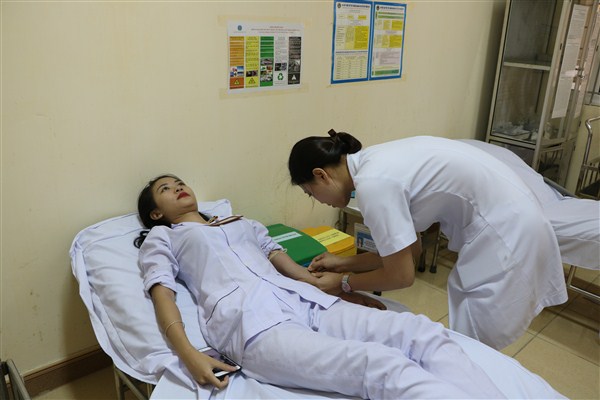 Cán bộ y tế của Bệnh viện Đa khoa tỉnh trong Câu lạc bộ ngân hàng máu sống đã tình nguyện hiến máu để cứu sống bệnh nhân.