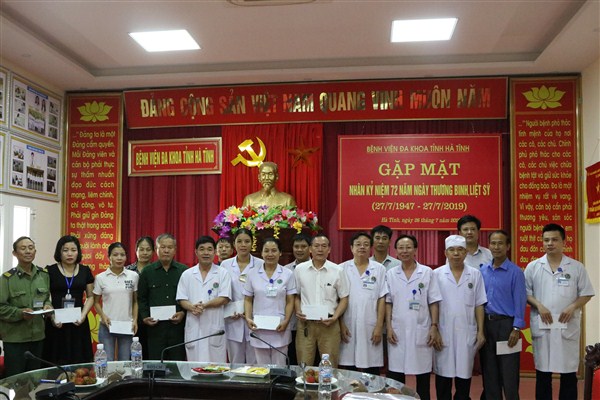 Nhân dịp kỷ niệm 72 năm ngày Thương binh Liệt sỹ (27/7/1947 - 27/7/2019), Bệnh viện Đa khoa tỉnh Hà Tĩnh tổ chức buổi gặp mặt tri ân các cán bộ, viên chức là thương binh, bệnh binh, thân nhân liệt sỹ hiện đang công tác tại các khoa, phòng trong toàn bệnh viện.