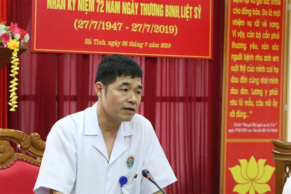 Nhân dịp kỷ niệm 72 năm ngày Thương binh Liệt sỹ (27/7/1947 - 27/7/2019), chiều ngày 26/7/2019, Bệnh viện Đa khoa tỉnh Hà Tĩnh tổ chức buổi gặp mặt tri ân các cán bộ, viên chức là thương binh, bệnh binh, thân nhân liệt sỹ hiện đang công tác tại các khoa, phòng trong toàn bệnh viện.