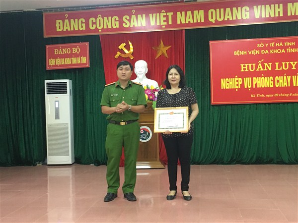 Thực hiện chương trình công tác Phòng cháy chữa cháy năm 2018, Kế hoạch số 248/KH-PCCC ngày 22/5/2018 về việc huấn luyện nghiệp vụ PCCC, ngày 02/6/2018, Bệnh viện Đa khoa tỉnh Hà Tĩnh phối hợp với Phòng Cảnh sát Phòng cháy - Chữa cháy và cứu nạn, cứu hộ Công an tỉnh Hà Tĩnh tổ chức lớp huấn luyện nghiệp vụ phòng cháy chữa cháy cho cán bộ viên chức bệnh viện.