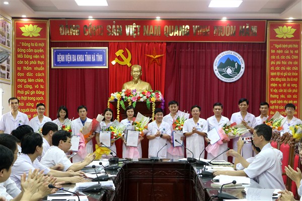 Sáng ngày 19/06, lãnh đạo Bệnh viện Đa khoa tỉnh Hà Tĩnh đã tổ chức trao các quyết định và tặng hoa chúc mừng cho 09 viên chức được bổ nhiệm vào các vị trí lãnh đạo tại các khoa, phòng.