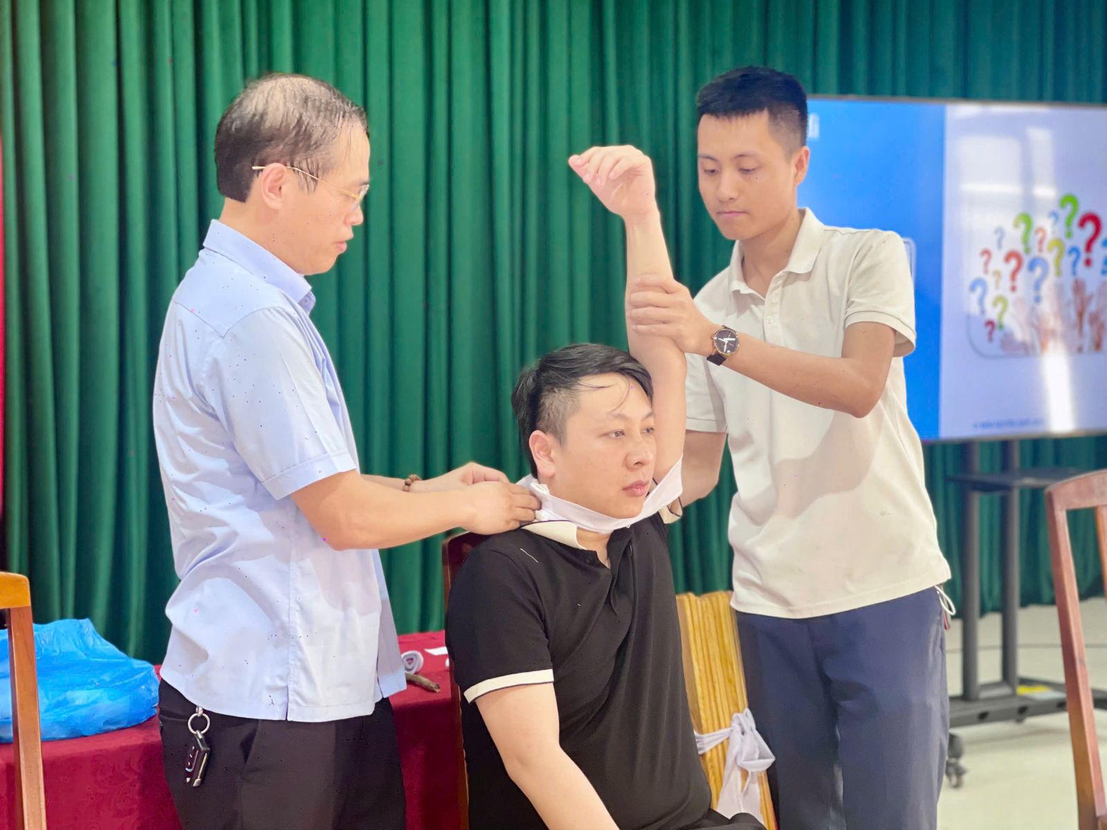 Bên cạnh đó, học viên còn được tiếp cận và thực hành các kỹ thuật xử lý chấn thương thường gặp như băng bó vết thương, cố định xương gãy nhằm hạn chế biến chứng. Những tình huống quen thuộc như ngộ độc thực phẩm, say nắng hay dị vật đường thở cũng được đưa vào các bài tập tình huống, giúp người tham gia rèn luyện kỹ năng ứng phó linh hoạt, tự tin hơn khi đối diện với các tình huống khẩn cấp trong đời sống.