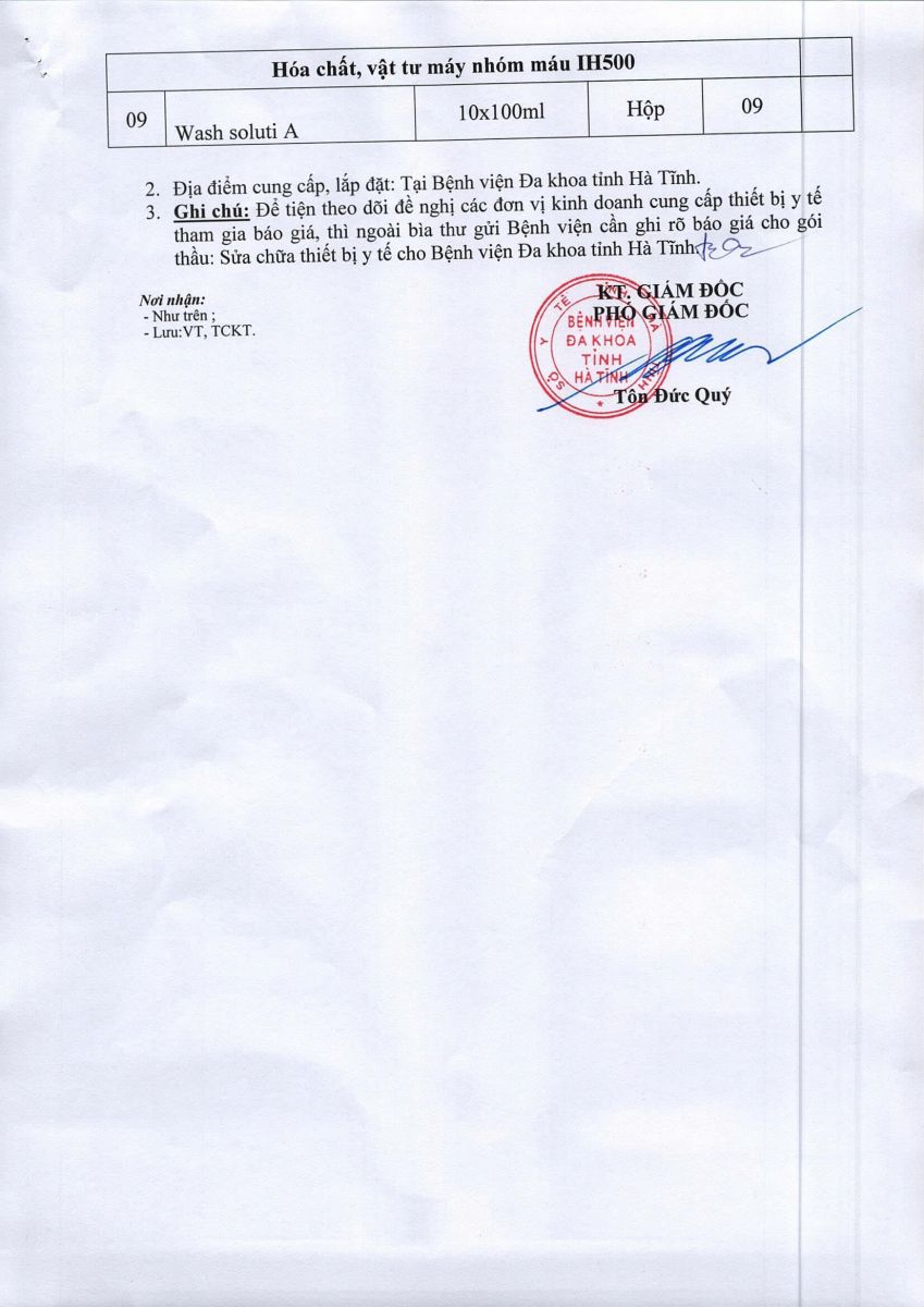 BVĐKT: Thông báo gửi thư báo giá Mua hóa chất, vật tư cho khoa xét nghiệm (Lần 02)