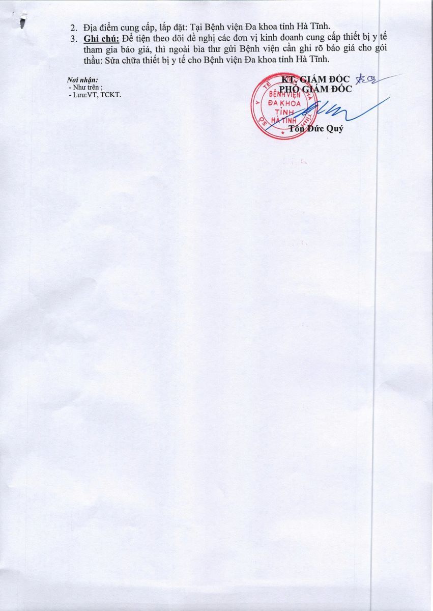 BVĐKT: Thông báo gửi thư báo giá Mua hóa chất xét nghiệm sinh hóa cho khoa Hóa sinh